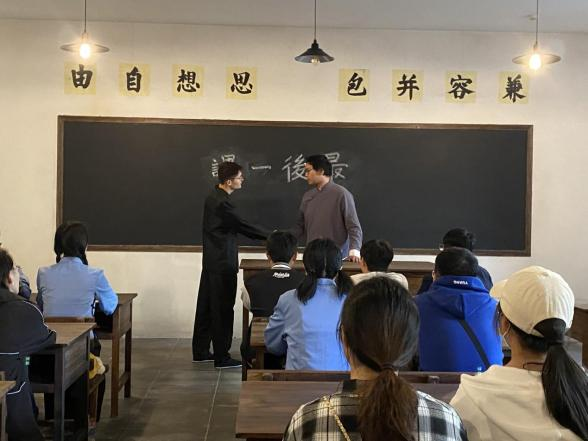 在二楼主展厅内,党员们在讲解员的带领下认真参观“燃血青春”中共苏州独立支部史迹陈列展。从讲解员声情并茂的讲述中,党员们了解了中共苏州独立支部成立的背景和意义、五四运动在苏州的影响和早期著名活动家在苏州进行的革命活动,以及为之燃烧青春的革命先烈们的英勇事迹。参观完主展厅后,党员们观看了原创沉浸式体验短剧《张闻天教我国文课》,并面向党旗庄重宣誓,重温入党誓词,回忆入党初心。