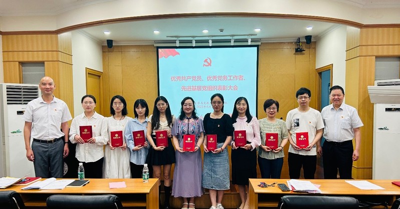 学院党委委员、副院长朱蓉蓉为优秀党务工作者颁发荣誉证书并合影留念。