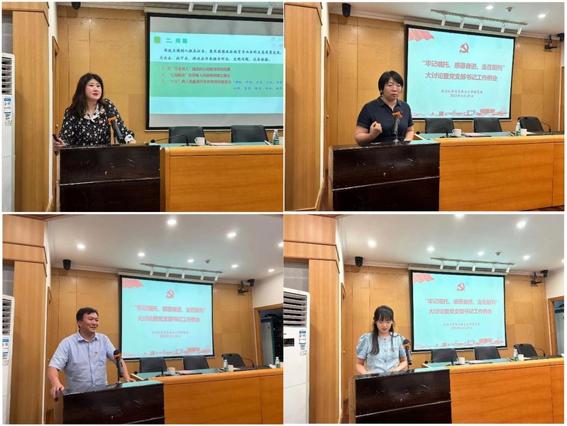 为深入开展学习贯彻习近平新时代中国特色社会主义思想主题教育,凝聚广泛思想共识,汇聚强大精神动力, 6月29日下午,马克思主义学院党委在天赐庄校区红楼115会议室召开“牢记嘱托、感恩奋进、走在前列”大讨论暨党支部书记工作例会。院党委理论学习中心组成员、各党(总)支部书记、副书记和委员参加会议。会议由院党委书记陈建军主持。