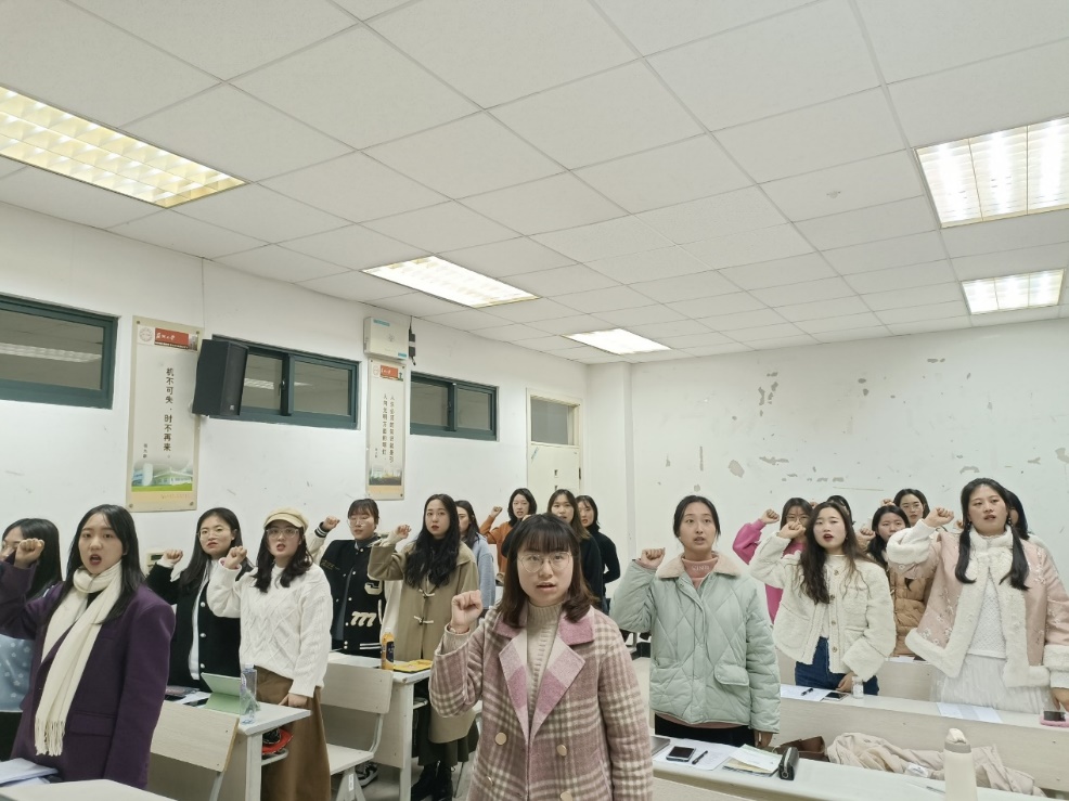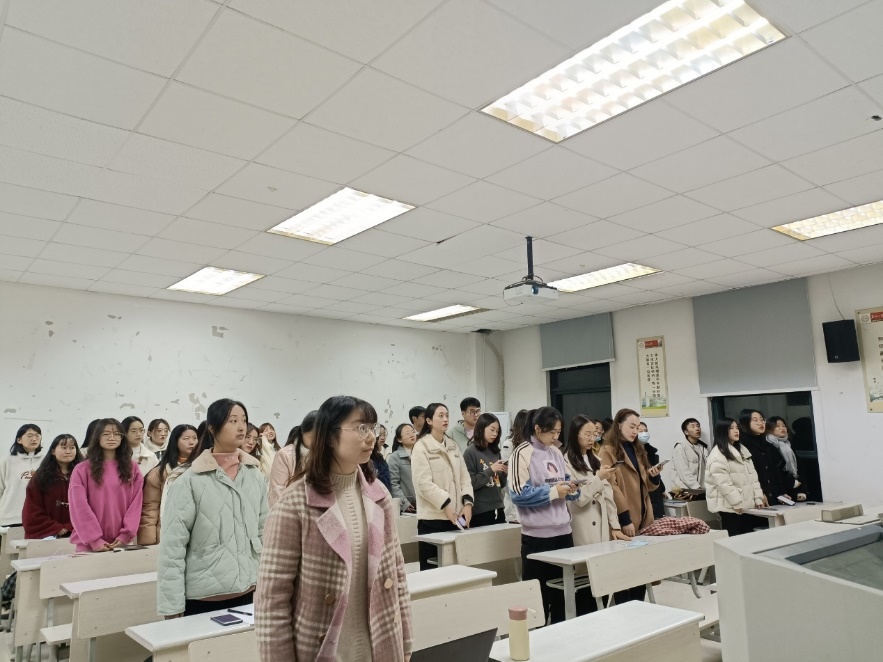 第二部分是2021级团支部书记汇报相关工作情况。学硕一班团支书仇春燕、学硕二班团支书李雪霜、专硕一班团支书李星雨依次发言,分别对任职以来的思想、学习、工作等方面作出汇报,表达了弥补自身不足、继续认真负责工作的决心。