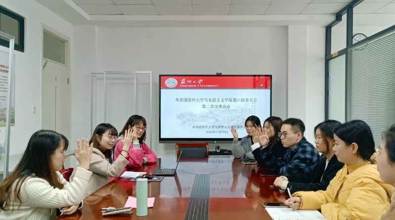 最后,徐玥宣布马院团委增补委员工作完成,并对第六届委员会全体委员的辛勤付出表示感谢。本次会议圆满成功,为苏大马院团委增添了新鲜的血液,为团委工作有序进行提供了组织保障。第七届委员会全体成员必将各司其职,尽心尽责,团结互助,积极配合团委各项工作的开展。