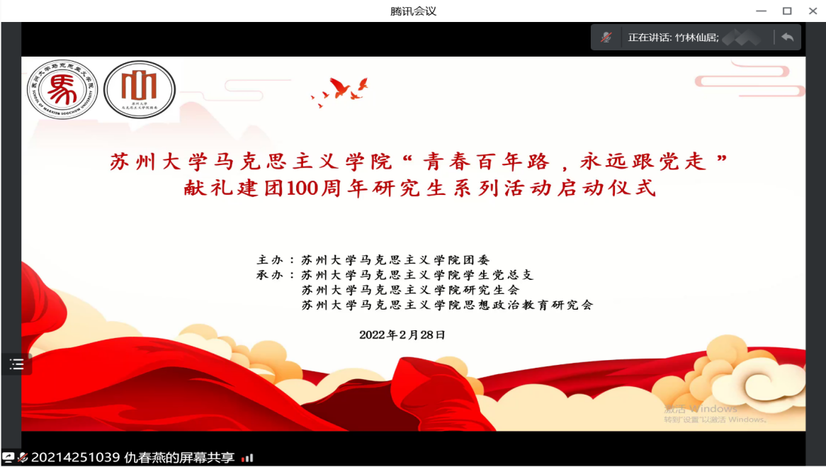 2022年正值中国共产主义青年团成立100周年,直播 于2月28日在线举行了“青春百年路,永远跟党走”献礼建团100周年研究生系列活动启动仪式。学院党委书记陈建军、研究生辅导员金鑫及全体硕博研究生参会。本次活动由直播 团委主办,直播 学生党总支、研究生会和思想政治教育研究会承办。活动由2021级硕士研究生仇春燕主持。