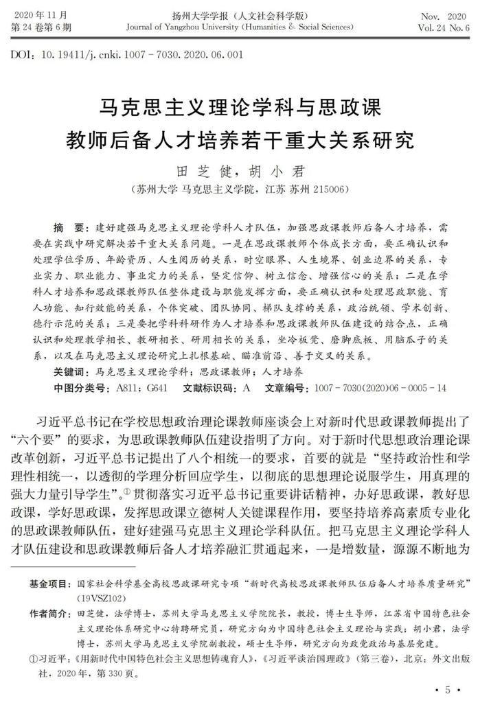 田芝健 胡小君:马克思主义理论学科与思政课教师后备人才培养若干重大关系研究