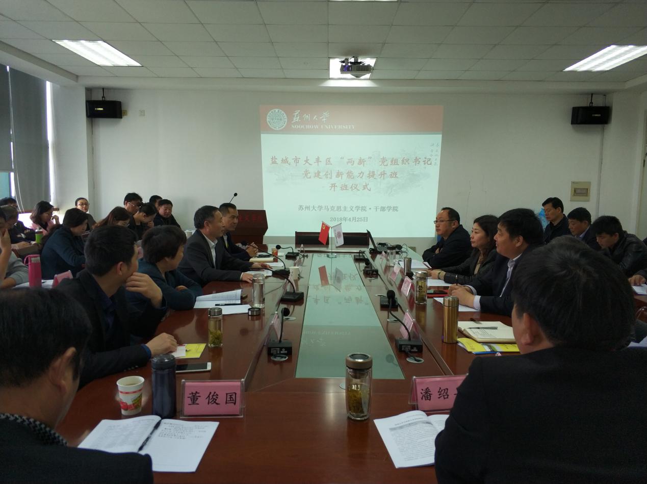 2018年4月24日—29日,直播 干部学院顺利承办了盐城市大丰区“两新”党组织书记党建创新能力提升研修班。24日上午,研修班在直播 会议室开班,盐城市大丰区委组织部副部长、老干部局局长冯银芳,经干科科长、研究室主任张国庆,直播 院长田芝健教授,马克思主义学院干部学院办公室副主任屈红凯及全体参训学员出席了开班仪式。