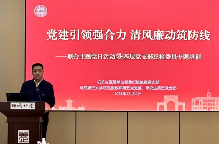 为进一步推动廉洁文化教育与作风建设深度融合,以支部共建强化优势互补、资源共享和协同育人,12月11日,机关与直属单位党委纪检监察党支部,马克思主义学院党委教师第五党支部、研究生第五党支部在东校区养正社区理响讲堂联合开展“党建引领强合力 清风廉动筑防线”主题党日活动暨基层党支部纪检委员专题培训。