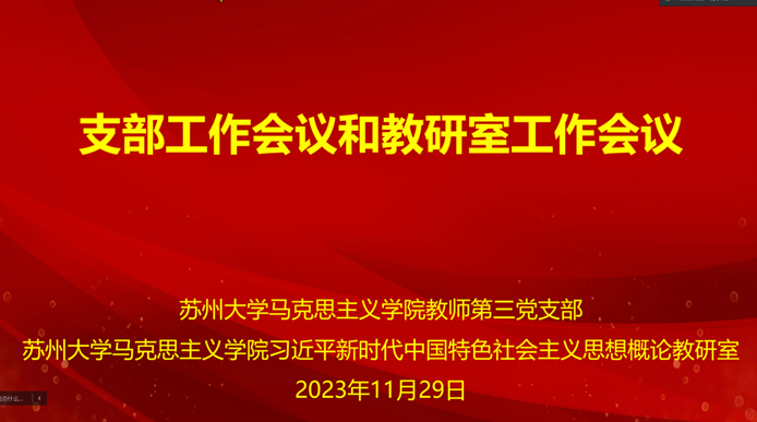 苏大马院教师第三党支部和习近平新时代中国特色社会主义思想概论教研室联合召开工作会议