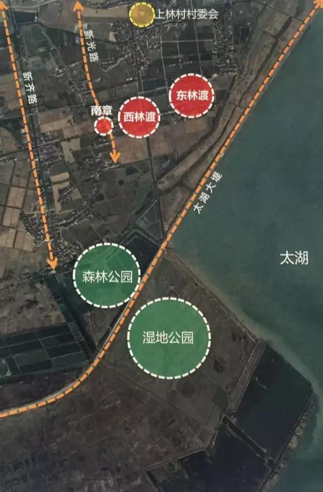 东林渡是14个自然村里面的一个自然村,上林村在上世纪八九十年代,苏州大力推进工业发展时候,受到太湖边规划用地、太湖保护等因素,全村6.7平方公里没有一家工业企业,目前是一个纯农业村,是苏州保留下来为数不多的纯农业村,全村生态自然。