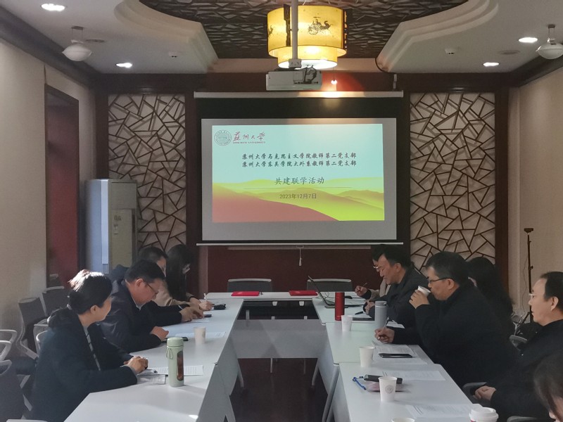 2023年12月7日下午,直播 教师第二党支部与东吴学院大外系教师第二党支部举行共建联学活动。马克思主义学院党委书记陈建军、东吴学院党委书记许继芳、马克思主义学院教师第二党支部党员及东吴学院大外系教师第二党支部党员参加了共建联学活动。活动由东吴学院大外系教师第二党支部书记高燕红主持。
