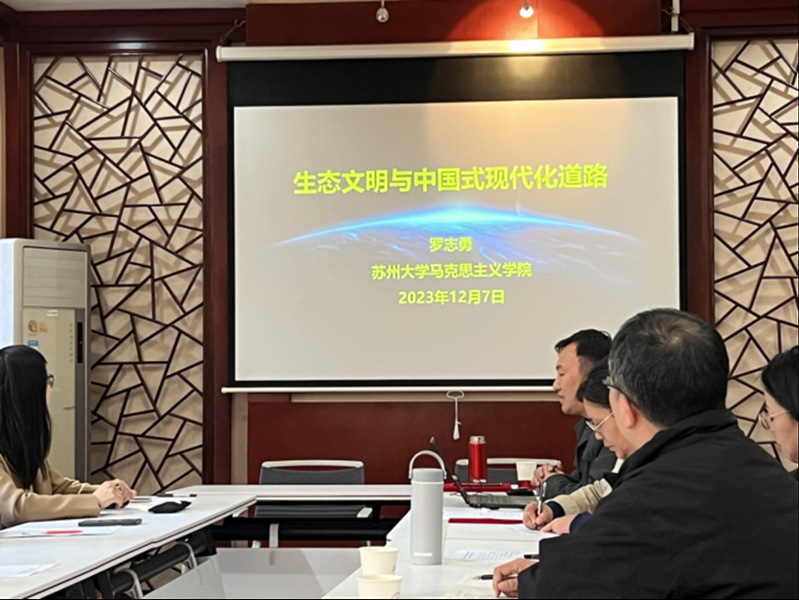 马克思主义学院教师第二党支部书记罗志勇做了《生态文明与中国式现代化道路》的主题报告。罗志勇书记结合党的二十大精神,从生态文明与中国式现代化道路的内在逻辑关系、党的十八大以来我国生态文明建设取得的巨大成就、中国式现代化进程中的生态环境问题与挑战和以生态文明建设推进人与自然和谐共生的中国式现代化的现实路径四个方面做了深入浅出的讲解和分析,引起了与会教师党员的积极思考和回应,大外系教师第二党支部书记高燕红、周轶亚老师、马克思主义学院臧其胜老师等围绕报告内容开展了热烈的交流互动。