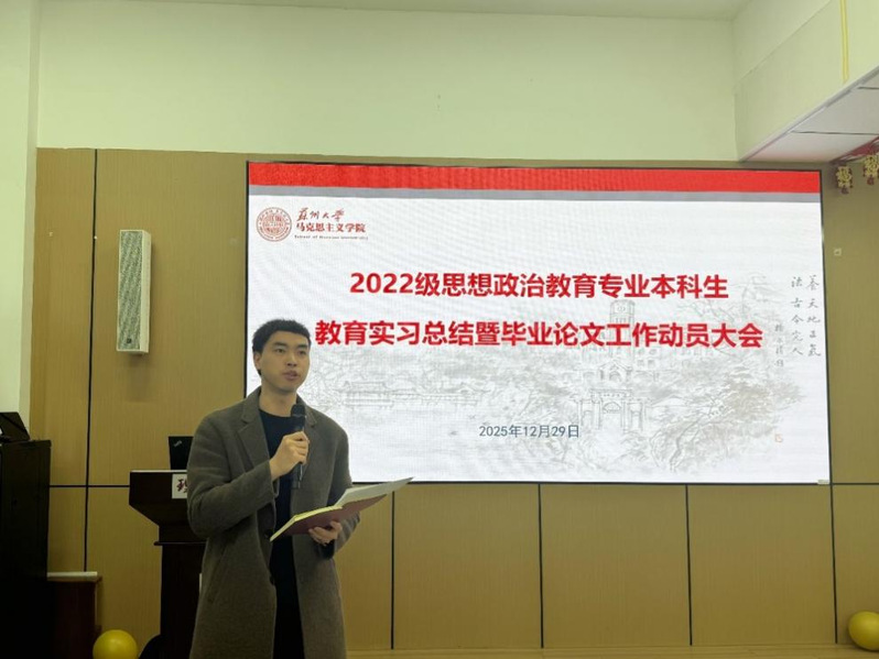 随后的毕业论文工作动员、选题发布环节,张建晓副主任发布毕业论文选题,并对后续工作进行部署。他强调,毕业论文是本科阶段学习成果的重要体现,提醒学生严格遵循学术规范,科学规划写作进度,高质量高效完成论文撰写。