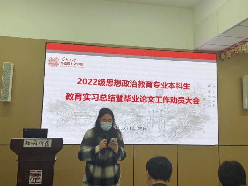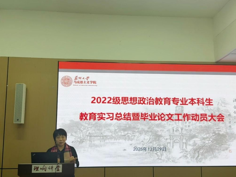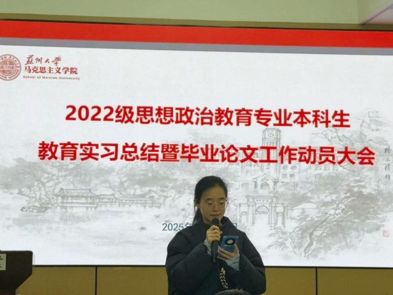 最后,朱蓉蓉副院长作总结讲话。她对同学们顺利完成实习表示祝贺,并鼓励大家及时总结反思,在实践积累中持续成长。针对即将开展的毕业论文工作,她强调,全体同学务必恪守学术规范,积极主动与导师保持沟通,以严谨的态度投入研究,用扎实丰硕的成果为本科阶段学习生涯画上圆满句号。
