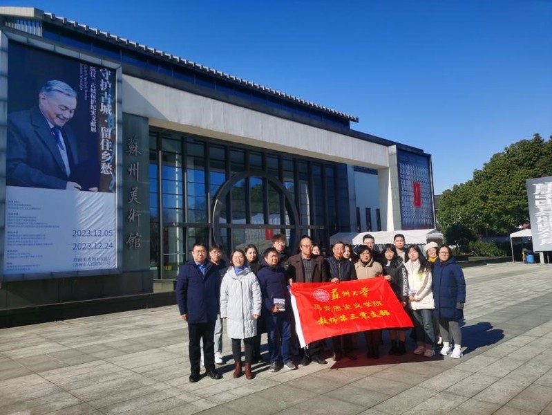 2023年12月22日,直播 教师第三(习近平新时代中国特色社会主义思想概论教研室)党支部、行政党支部、研究生第一党支部在苏州美术馆联合开展“学习习近平文化思想 从古城保护中汲取力量”主题党日活动。教师第三(习近平新时代中国特色社会主义思想概论教研室)党支部书记杨余春,副书记、教研室主任吉启卫和胡小君教授、戴梦石老师、毛瑞康老师、王小芳老师,行政党支部书记李文娟,学院专职组织员、支部组织委员王静和揭雨晨老师,研究生第一党支部组织委员程慧琴,支部党员牛雅甜、郑心玥、谢亚玺、介晓聪、甘媛、王晗于、仇春燕等参加此次活动。