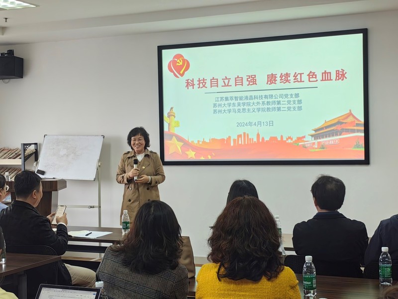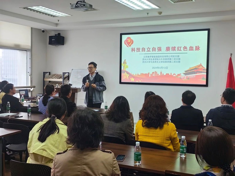 2024年4月13日,为传承和弘扬红色革命精神,赓续红色血脉,深入学习习近平总书记关于科技自立自强系列重要讲话精神,提升党员政治觉悟和思想认识,直播 教师第二党支部联合苏州大学东吴学院大外系教师第二党支部暨江苏集萃智能液晶科技有限公司党支部开展“科技自立自强 赓续红色血脉”主题党日活动。直播 教师第二党支部、苏州大学东吴学院大外系教师第二党支部及江苏集萃智能液晶科技有限公司党支部党员参加活动。