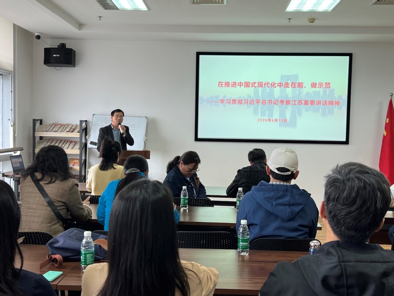 参观结束后,直播 副教授、分工会主席兼苏州城市学院马克思主义学院副院长唐强奎博士应邀为党员们上了一堂题为《在推进中国式现代化中走在前、做示范——学习贯彻习近平总书记考察江苏重要讲话精神》的主题党课,从党的十八大以来的非凡十年期间及党的二十大以来,习近平总书记四次考察江苏发表的系列重要讲话精神入手,对江苏省中国式现代化走在前、做示范做了系统性阐释,对党的新思想、新论断、新理论进行了深入浅出的讲解与分析。与会党员围绕全面推进中国式现代化进程中坚持科技自立自强的重要价值和现实路径展开了热烈的交流讨论。马克思主义学院教师第二党支部罗志勇书记、郑芸老师,东吴学院大外系教师第二党支部高燕红书记、左步雷老师,江苏集萃智能液晶科技有限公司党支部书记殷梦丹、薛九枝所长等代表各支部分别做了交流发言。