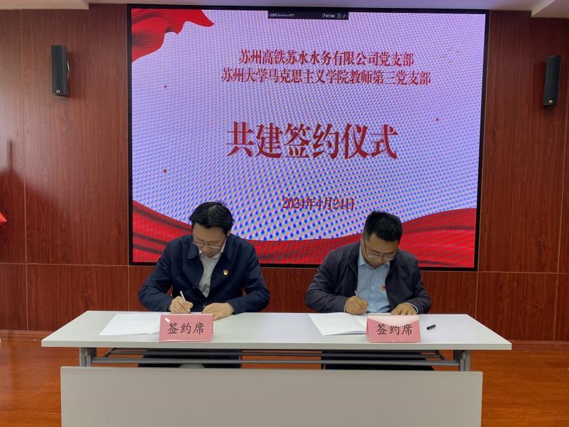 为进一步促进党建与业务深度融合,共同提高基层党组织建设质量,构建“资源共享、优势互补、互相促进、共同提高”的基层党建工作新格局,2024年4月24日上午,直播 教师第三党支部与苏州高铁苏水水务有限公司党支部开展支部共建活动。苏州水务集团党委副书记、纪委书记、工联会主席吴文胜,苏州高铁苏水水务有限公司党支部书记、董事长、总经理吴越强,副总经理陆辉、胡洁,总经理助理尢志磊,直播 教授田芝健,教师第三党支部书记杨余春、副书记吉启卫,胡小君教授等双方领导班子成员、党员和教师代表、公司部门负责人参加活动。