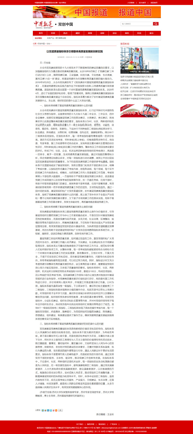 方世南:以党建质量指标体系引领整体高质量发展的创新实践