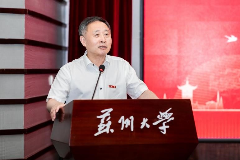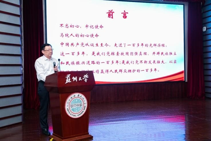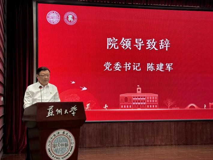 陈建军为学院全体毕业生党员讲授《立德树人 续写华章》主题教育党课,与毕业生一同回顾党的历史,再次深入理解党的宗旨,并提出对毕业生在今后的工作生活中践行党的初心使命,实现青春梦想的殷切期望。