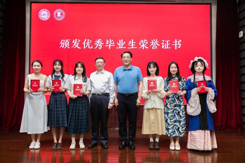 优秀毕业生荣誉授予仪式上,陈建军书记和孙建华院长为优秀毕业生们颁发荣誉证书。