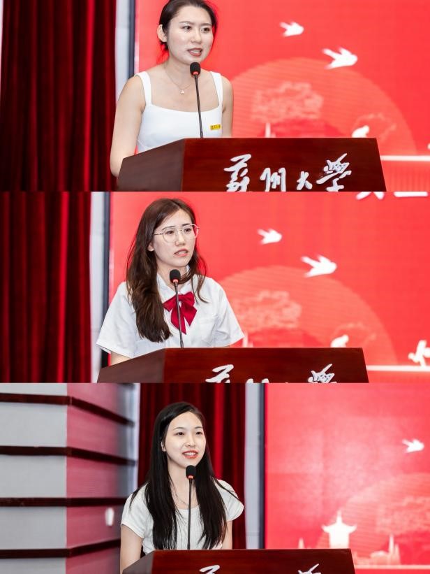 博士毕业生代表朱慧、硕士毕业生代表王林宇、王佩青分别上台发表毕业感言,表达对母校的感激之情和走向未来的坚定信心。