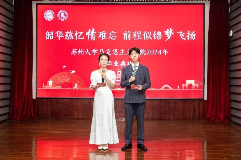 家长代表汤秦莉向毕业生们表达了最真挚的祝福和期许,同时感谢马克思主义学院为学子们提供了优良的学习研究环境和丰富的展示平台,感谢所有老师的精心指导和辛勤付出。