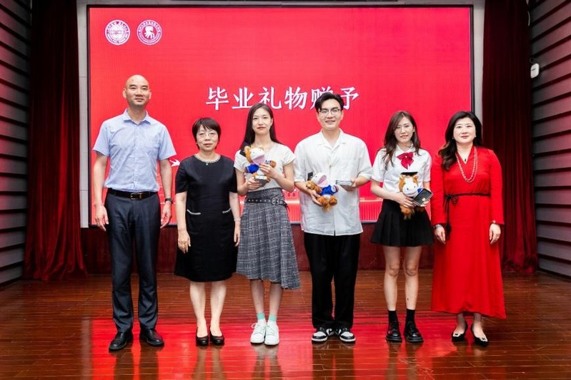 学院副院长朱蓉蓉、茆汉成、党委副书记、副院长蒋慧为毕业生代表赠送学院精心准备的毕业礼物。