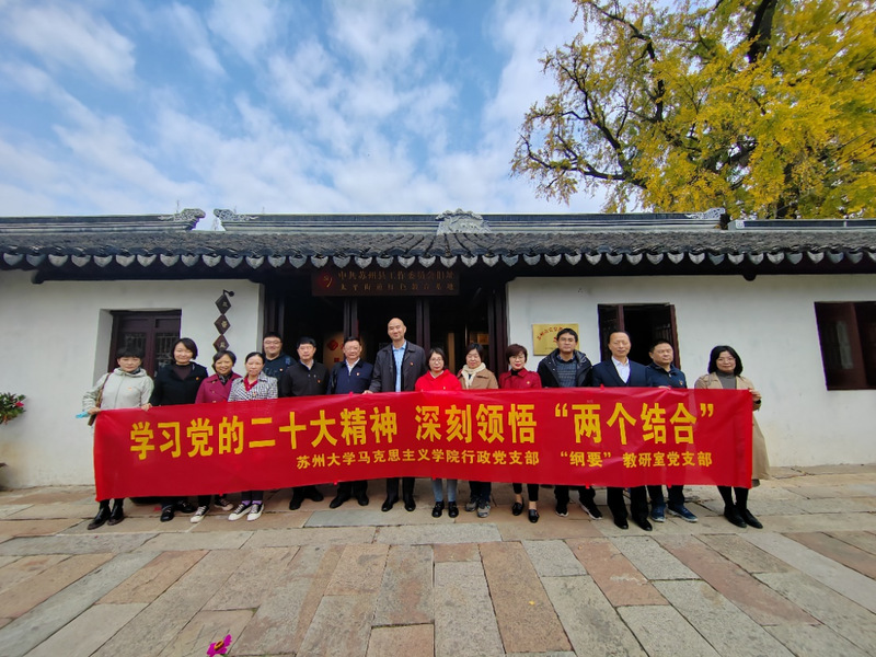 为深入学习贯彻党的二十大精神,深刻领悟“两个结合”的科学内涵和时代价值,推进习近平新时代中国特色社会主义思想进教材、进课堂、进头脑,2022年11月24日,直播 “纲要”教研室党支部、行政党支部,赴相城区太平老街、冯梦龙村联合开展“学习党的二十大精神 深刻领悟‘两个结合’”主题党日活动。