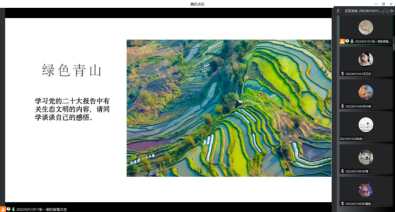 为教育引导马克思主义学院学子深入学习党的二十大精神,自觉践行习近平生态文明思想,做生态文明建设的践行者,直播 团委于11月28日举办了“生态建设启新程,美丽中国展新颜”主题团日活动。本次活动由2022级硕士研究生张一萌主持。